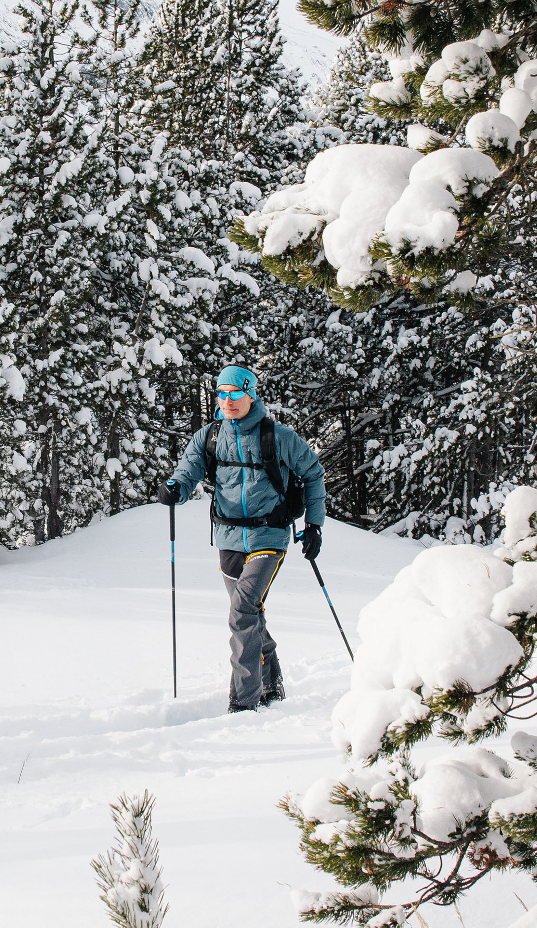 Pánská pérová bunda urcená pro skialpinismus i jiné zimní aktivity, vhodná pro každodenní nošení.