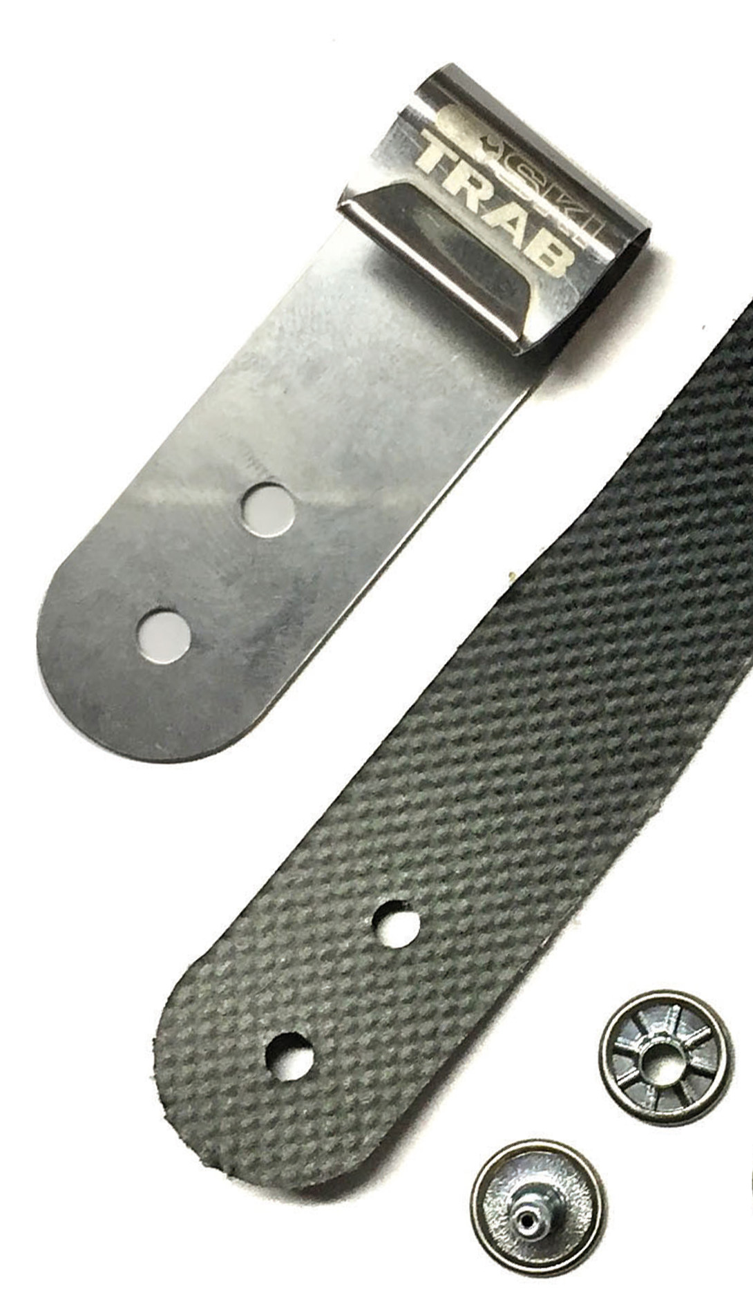 Hácek na špicku pro pásy z lehké oceli, doplnený nýty. Ideální pro všechny modely Ski Trab.