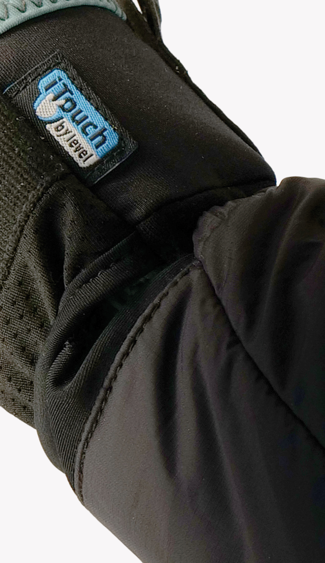 Polartec fabric+ goat leather patch + conductive micropile on index finger